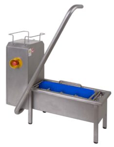 Kenkäpesurit elintarvikealan- ja muiden teollisuusalojen tarpeisiin. Laitteet valmistetaan Euroopassa ruostumattomasta teräksestä AISI 304 kestämään päivittäistä ympärivuotista käyttöä vaativissa olosuhteissa. Laitteissa on panostettu hygieniaan ja päivittäiseen puhdistettavuuteen mm. hitsatun rakenteen ja nopeasti irrotettavien pesuharjaksien avulla.